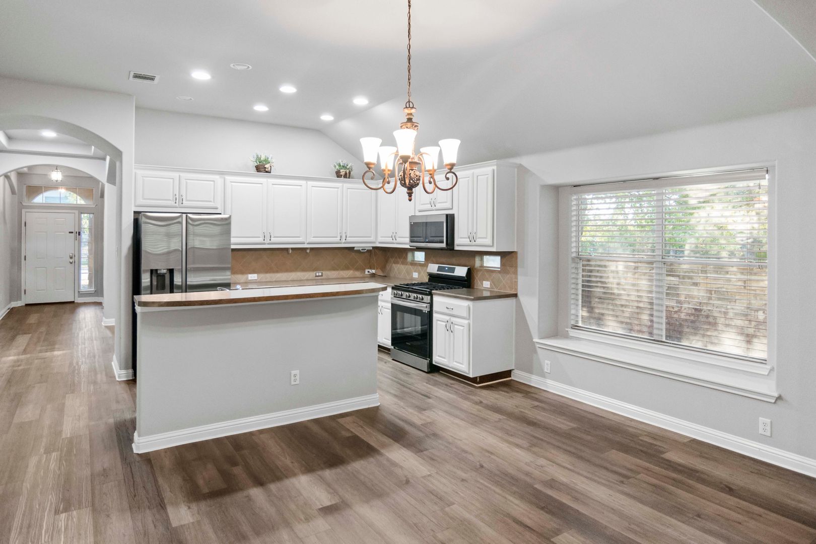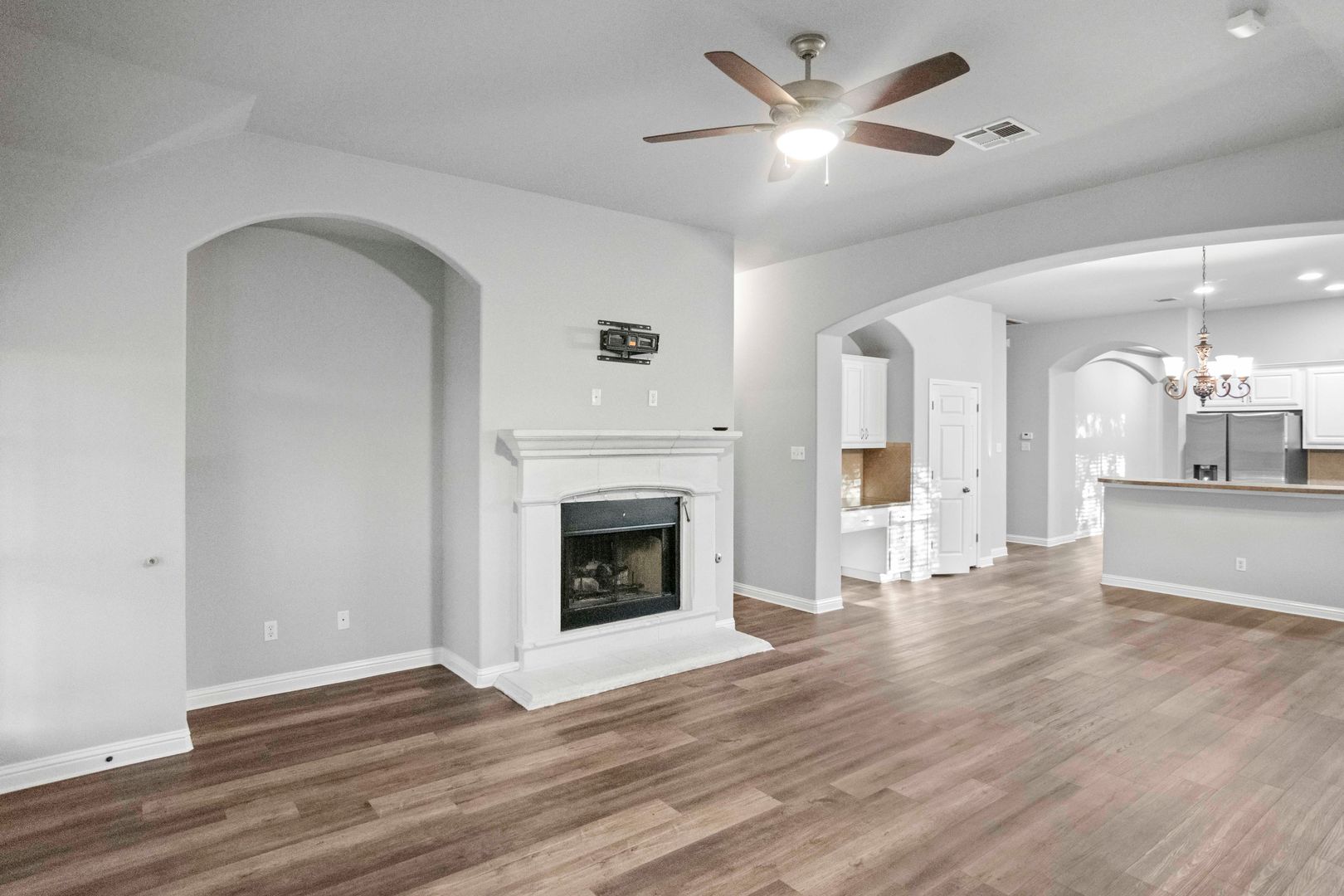 Enjoy an open-concept layout with a bright living area and cozy fireplace, a modern kitchen with granite countertops, and a spacious primary suite with a walk-in closet.